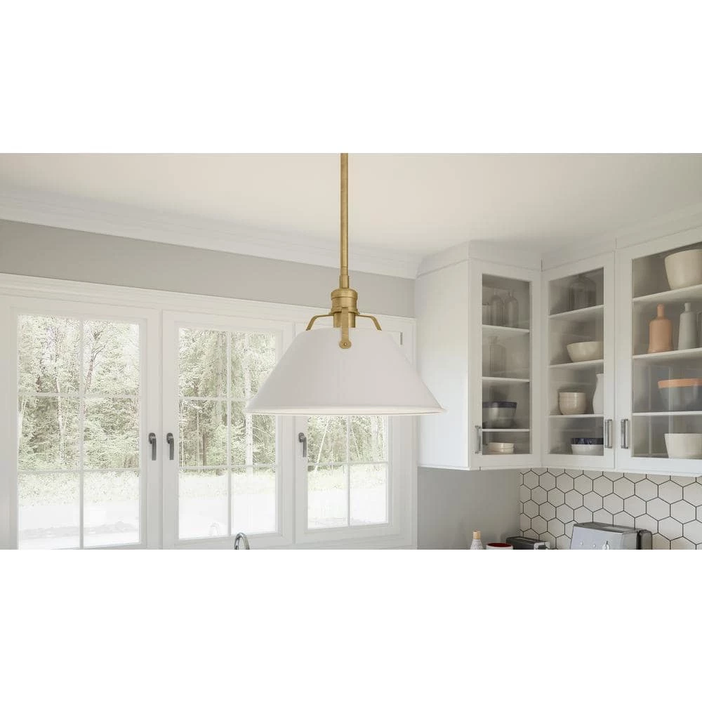 Choose the colorway that complements your space: weathered brass paired with a white metal shade, or antique nickel paired with a matte black shade. Either way, the Jessup pendant delivers quiet style. Hang Jessup in a variety of industrial bar or kitchen settings for a truly unique and versatile look.