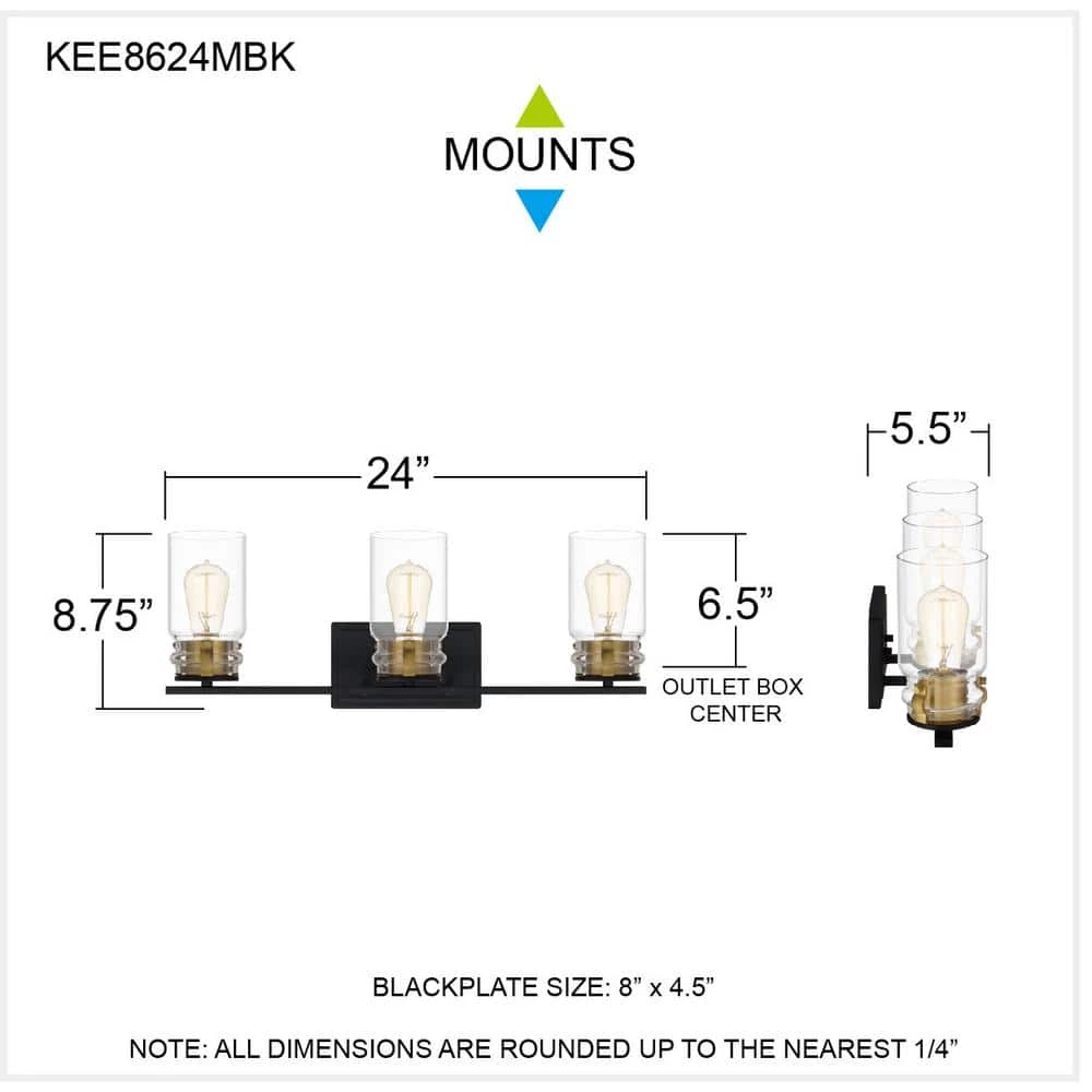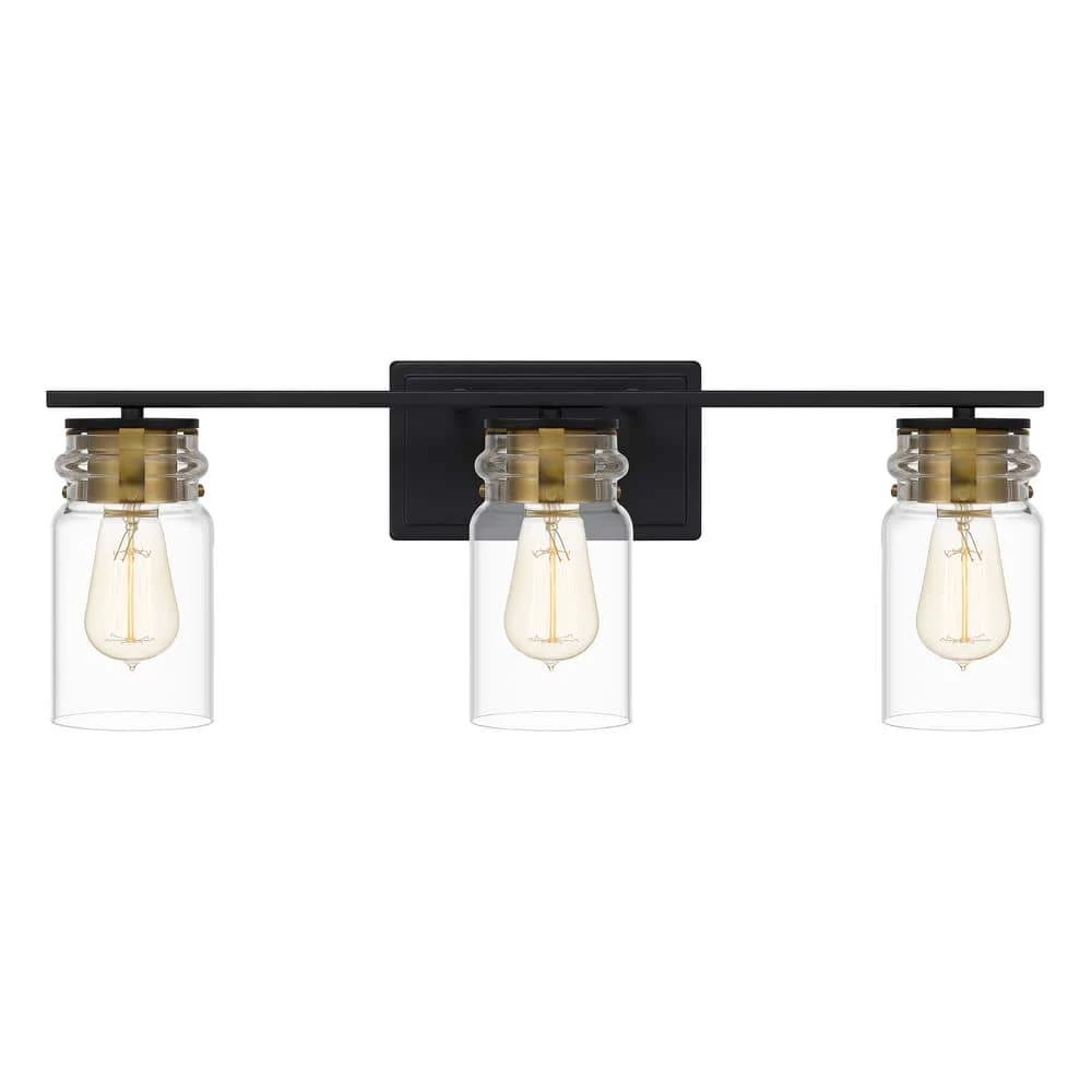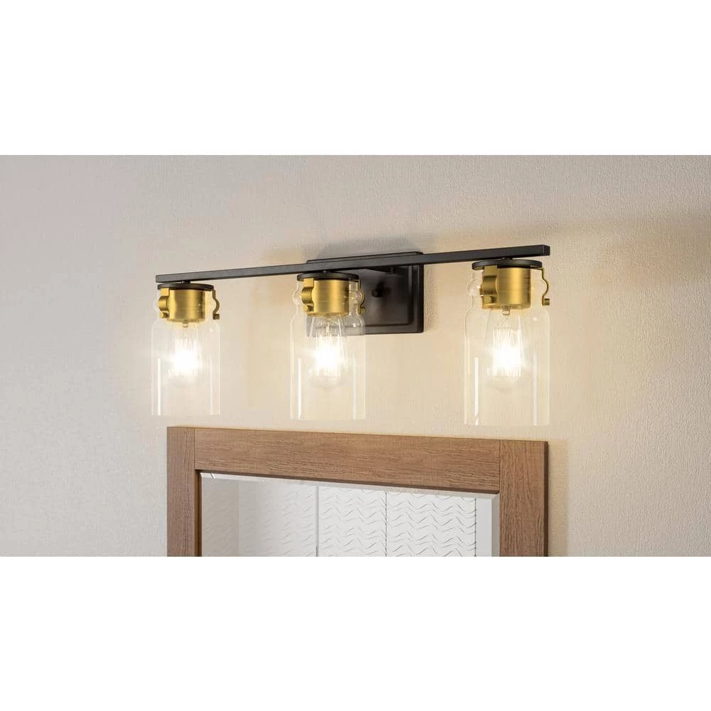The Keesey bath light is a natural fit for mid-century-inspired design schemes. With a masculine edge, thanks to its matte black, metal construction, this light also features brass-toned accents for a hint of luster. Orient the clear glass shades up or down to suit your distinctive style.