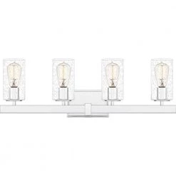 Create your own spa oasis with a bath light from the Kirby collection. Clear seeded glass shades sit atop a stately Polished Chrome frame for a look that is truly transitional. A rectangular backplate, sleek lines, and an exposed light source give this classic silhouette a touch of modern farmhouse style. Choose from a variety of sizes in this versatile collection, and add in vintage light bulbs for that desired glow.