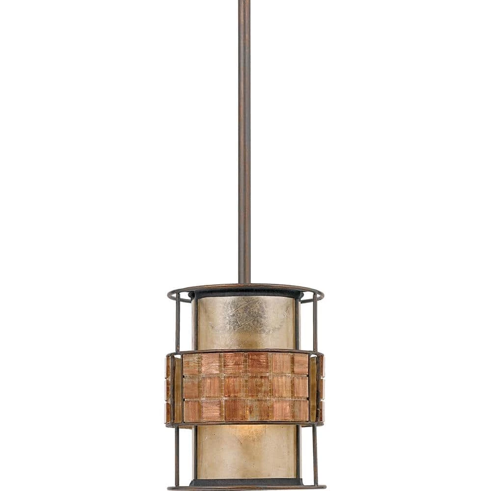 This mica piece is an addition to the Quoizel Naturals collection and features a mosaic tile stripe which appears to be floating around a taupe mica shade. The tiles have a coppery shimmer for an added touch of elegance. It provides a warm and inviting accent for most any home.