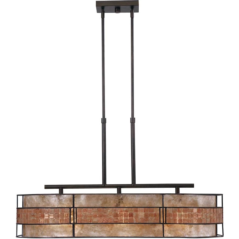 This mica piece is an addition to the Quoizel Naturals collection and features a mosaic tile stripe which appears to be floating around a taupe mica shade. The tiles have a coppery shimmer for an added touch of elegance. It provides a warm and inviting accent for most any home.