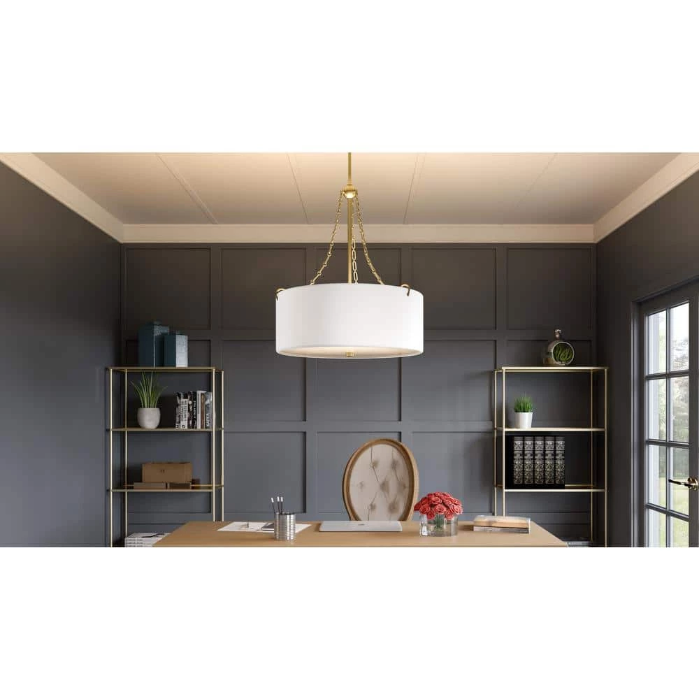 A white linen drum shade sets the tone for cozy ambience in the Lambeau pendant. This light is available in 2 finishes, including goes-with-anything matte black. Or, choose painted brass to enhance the design’s inherent warmth and subtle cottage style.