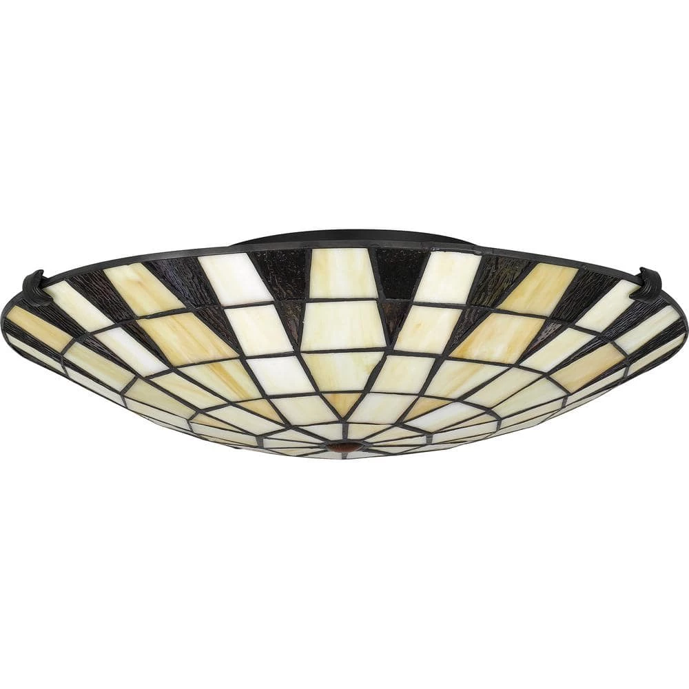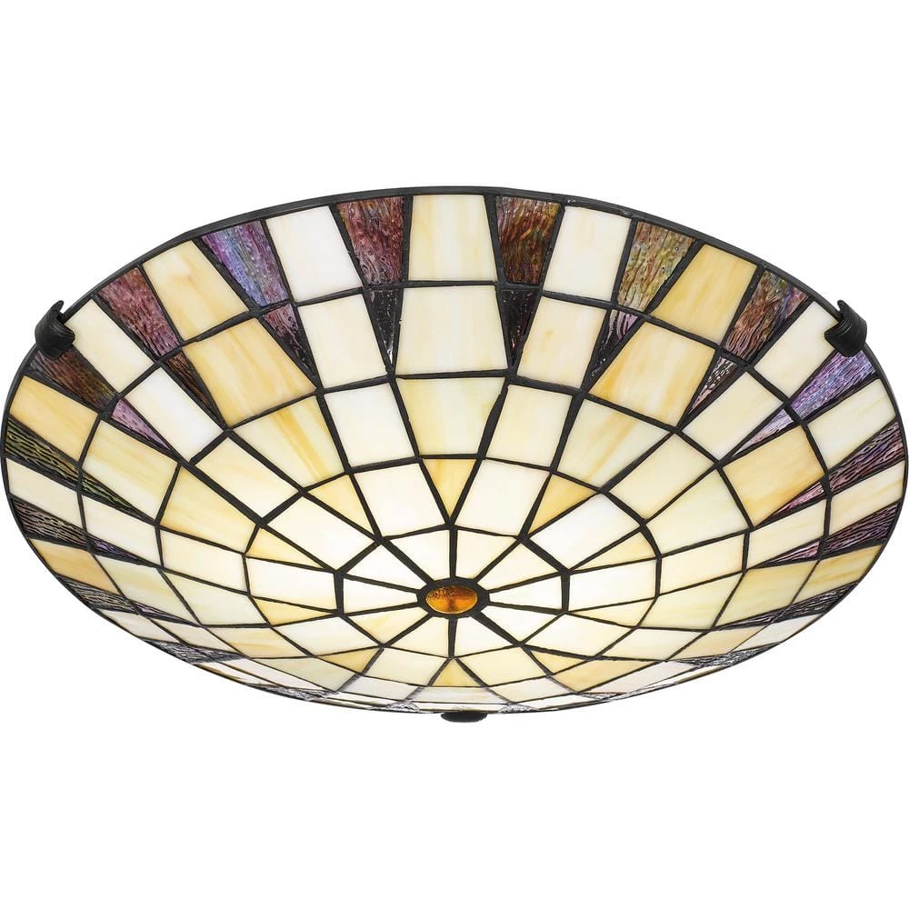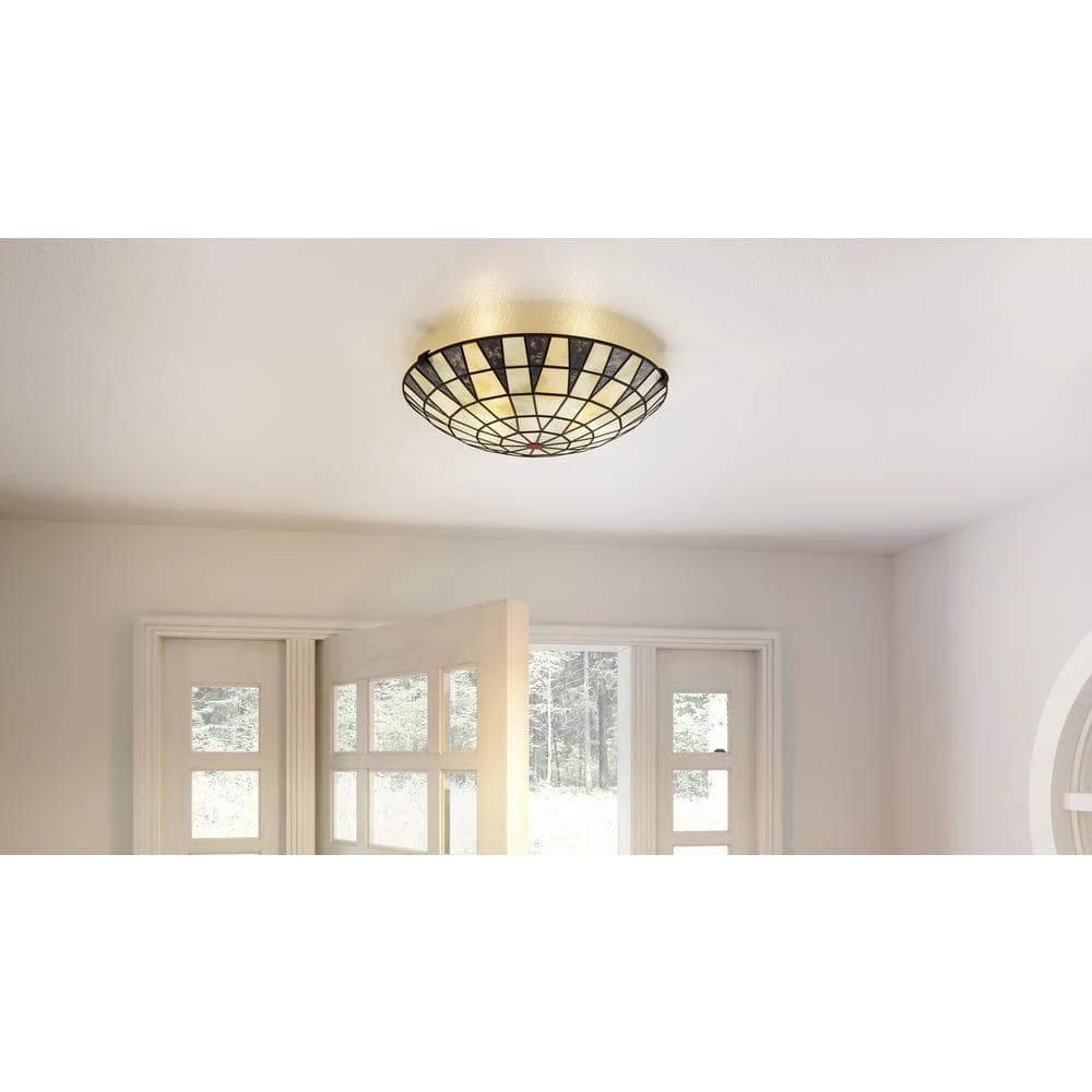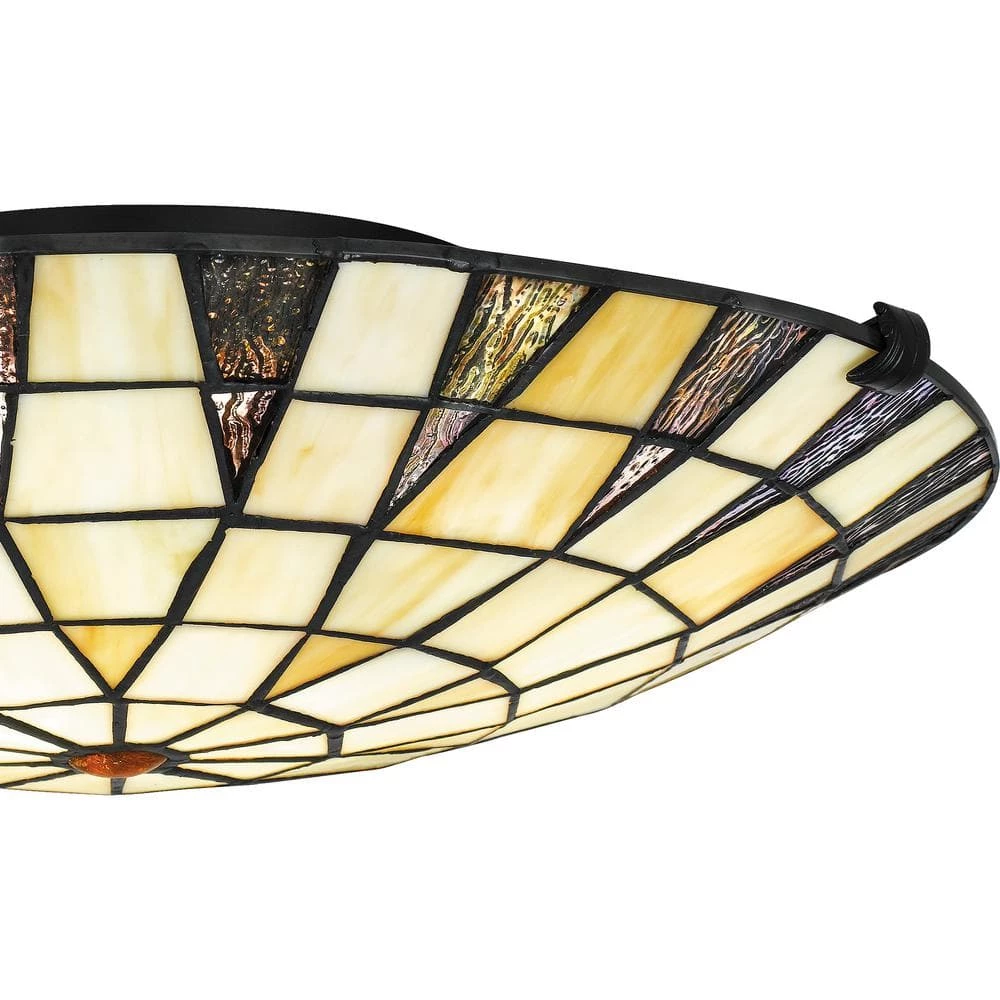 Multicolored glass creates the artisan look and feel of Legend, whether as a table lamp or flush mount. Paired with a matte black finish, this design includes neutral tones of stained glass in shades of cream and iridescent charcoal. A pair of table lamps adds beauty to the bedroom, while the flush mount style creates an inviting moment in a foyer.