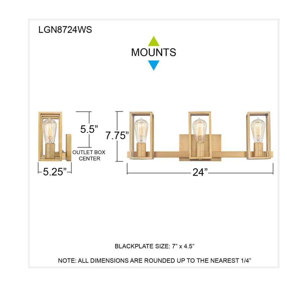 - Weathered brass finish