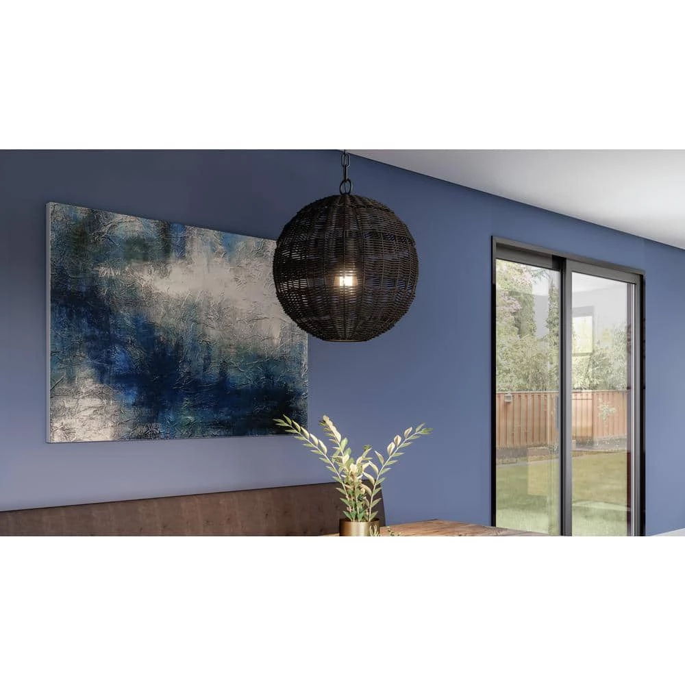- Clear glass shade sits inside rattan globe for unique illumination