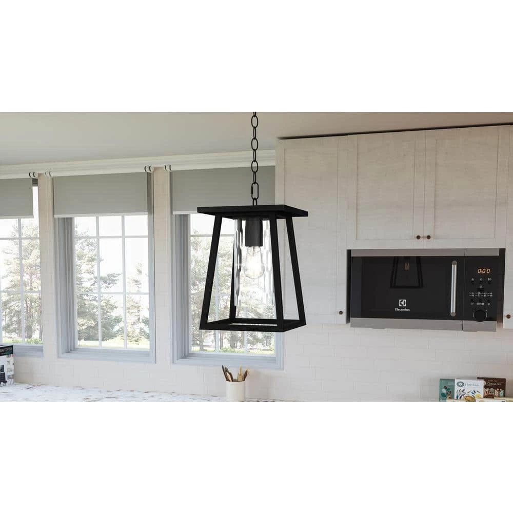 The Lodge collection a simplistic design with unique glass features a look that’s all its own. Its distinctive clear hammered glass is showcased by the simple framework which is highlighted with a Mystic Black finish. The versatile design makes Lodge a great choice for indoor or outdoor use.
