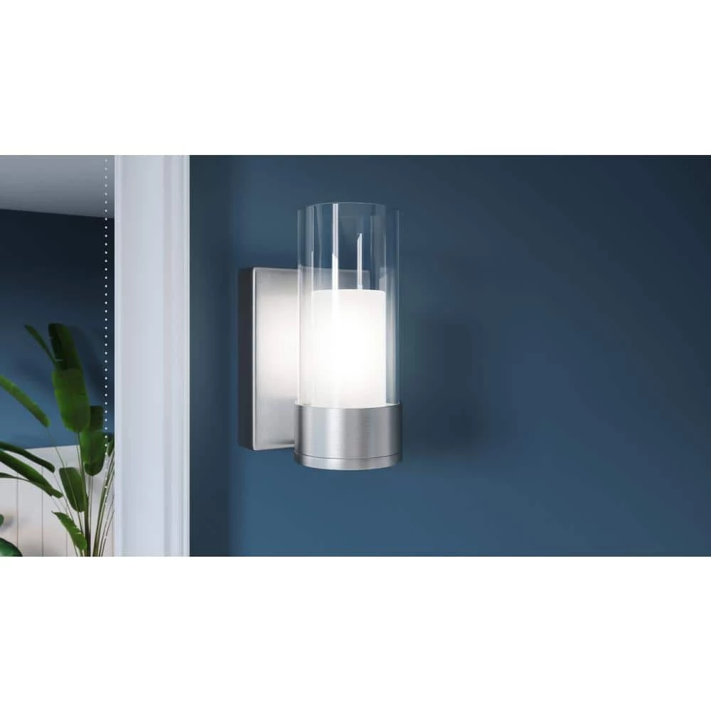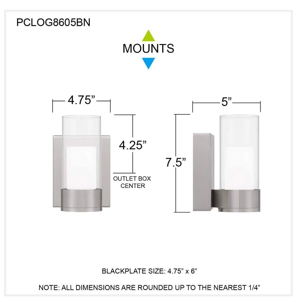 Logan 4.75 in. Brushed Nickel LED Sconce with Clear Glass Shade by Quoizel