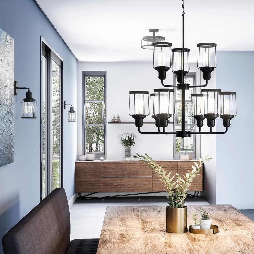 Add an industrial feel to your home with the Ludlow collection. A simple silhouette combined with caged glass shades creates interest without sacrificing light projection. Finished in earth black, this collection is the perfect addition to any room.