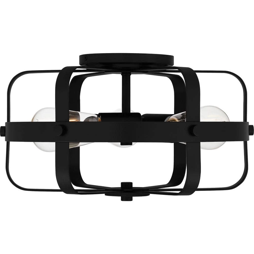 The Manzel flush mount puts a contemporary spin on industrial design. Sleek curved lines encircle 3 exposed bulb sockets to form a one-of-a-kind geometric cage design. Matching knob details throughout the metal bands add a layer of dimension and style. Choose from either brushed nickel or matte black – and add in vintage filament style bulbs for extra flair.