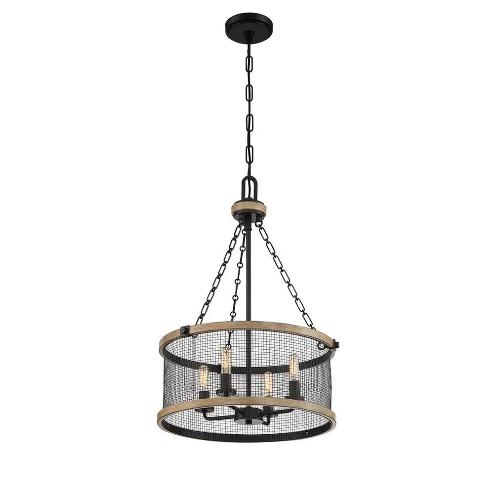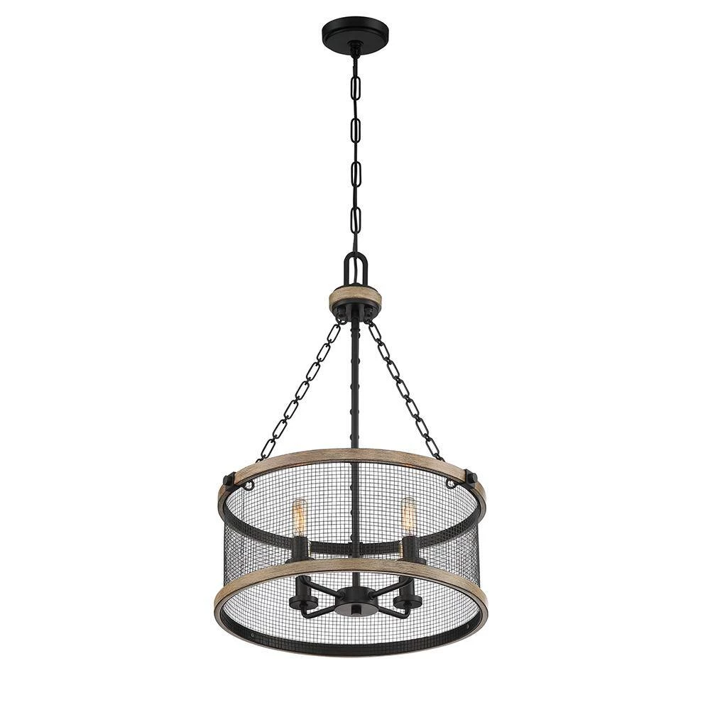 Make a striking addition to your living space with the McCrady collection. The Matte Black finish paired with painted wood accents come together to create a bold industrial farmhouse look. Metal mesh shades add additional visual interest without sacrificing light flow.
