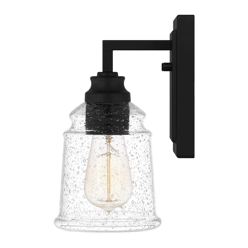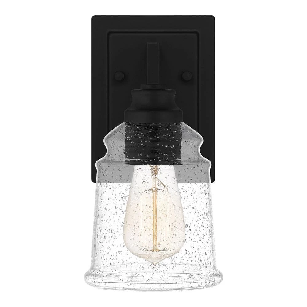 With its classic styling and clean lines, McIntire is the perfect choice to upgrade any bathroom vanity. A striking matte black finish pairs perfectly with clear seedy glass shades for a bold yet subtle contrast – proving that simple does not have to mean boring. This versatile bath light is available as a one, two, three, or four light and can be installed with shades facing up or down.