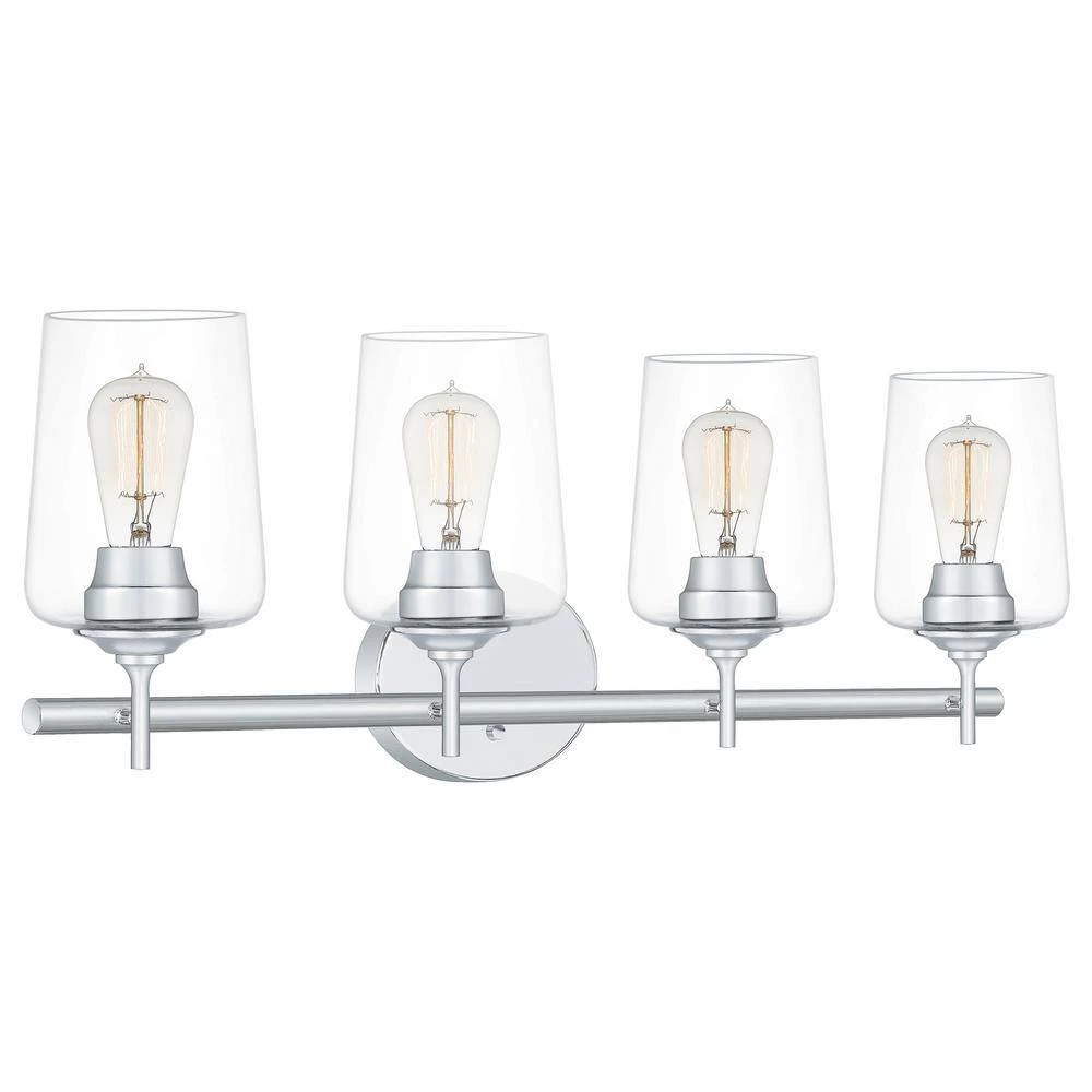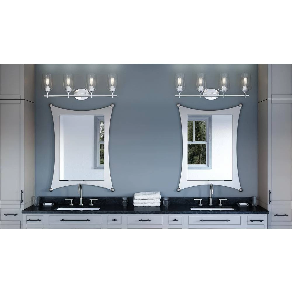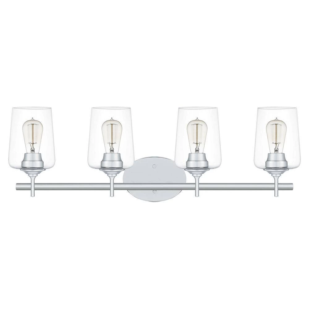Refresh your bathroom with the Miller collection. This fixture features classic design elements with a sleek, Polished Chrome finish for an updated, clean look. The cognac shape glass shades allow ample light flow while also showcasing the oversized sockets. This collection can be hung as a downlight or uplight depending on your preference.