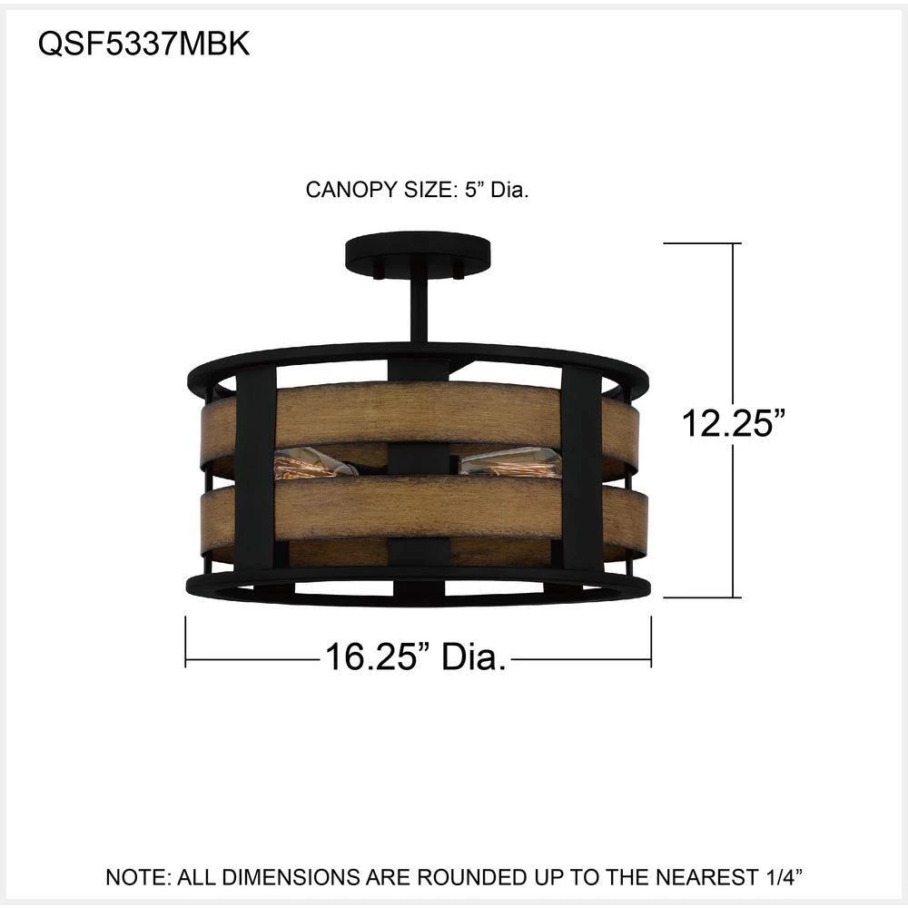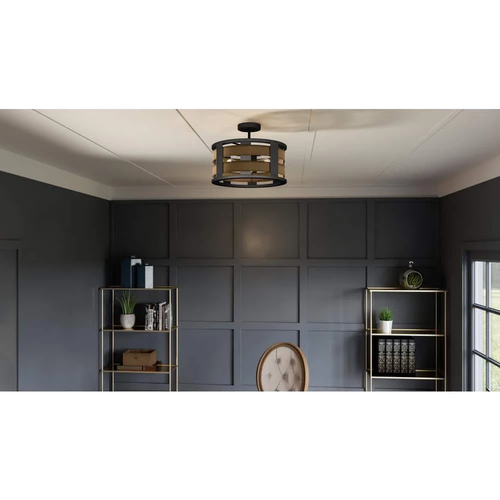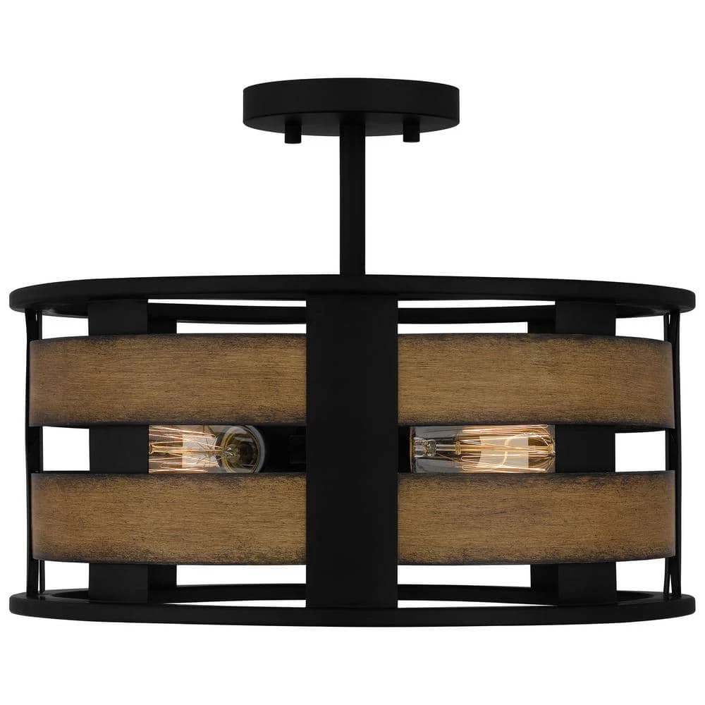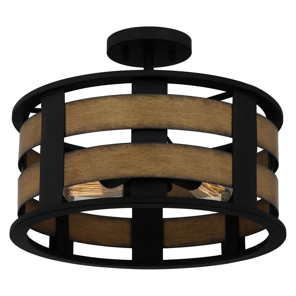 The Milton semi-flush mount is a study in industrial design. This clever piece incorporates 2 wooden rings with matte black accents, adding in a rustic farmhouse feel. Add in vintage bulbs (not included) for a subtle touch of retro flair.