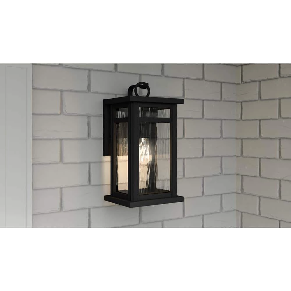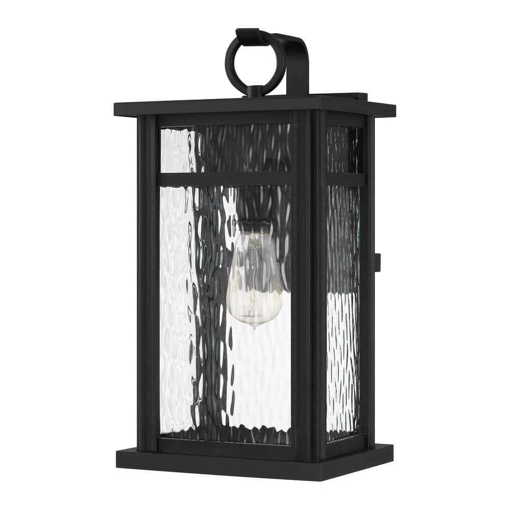 Moira 9.25 in. 1-Light Earth Black Outdoor Wall Lantern Sconce with Clear Water Glass by Quoizel