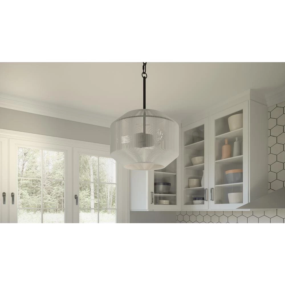 Scandi-modern sensibilities are on display in the Newfoundland pendant, part of the Quoizel Naturals line. This fixture features thin rope, allowing light to seep through and create mesmerizing patterns. A matte black finish anchors the look in minimalist style.
