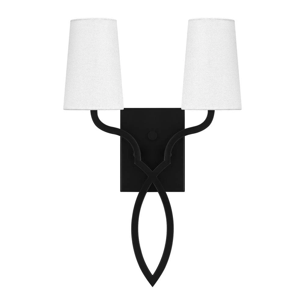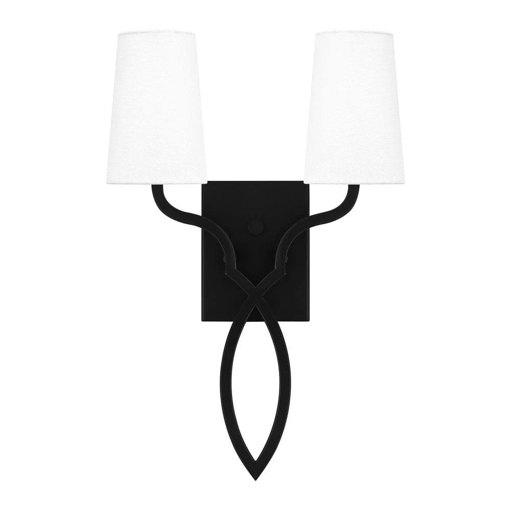 Shapely and eye-catching, the O’Hare wall sconce features a fascinating silhouette and white linen shades. Paired with simple, curved lines and a matte black finish, this sconce suits a range of interior design styles, including Mediterranean and Farmhouse. Use it alone or make a statement as a pair.