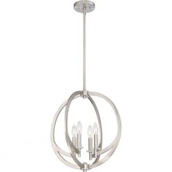 The minimal details and streamlined design make a huge impact with the Orion Collection. The planetary shape of the fixture is finished in a lustrous Brushed Nickel or Western Bronze and the crystal-clear glass candle holders accent the piece beautifully. This fixture adjusts to accommodate the various ceiling heights.