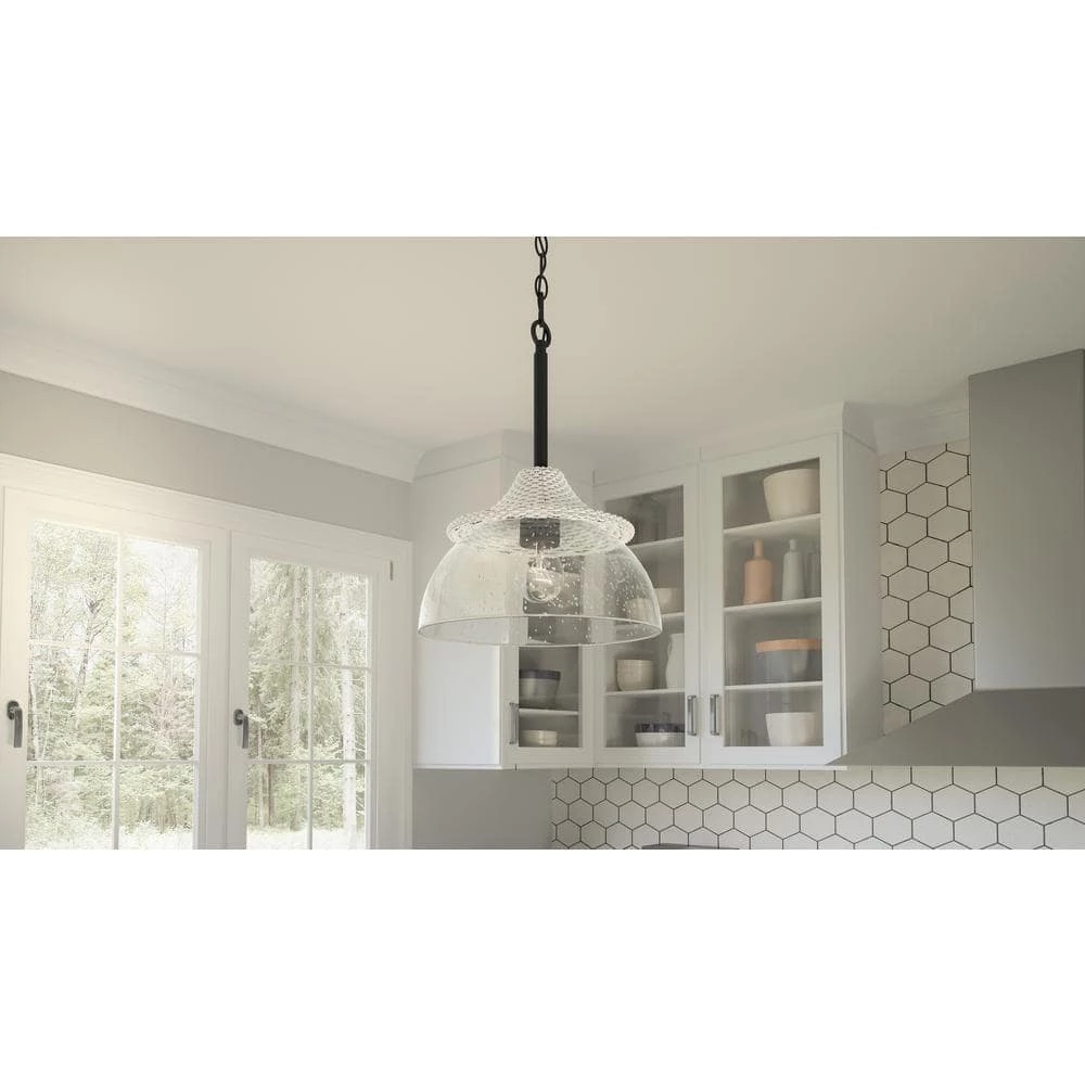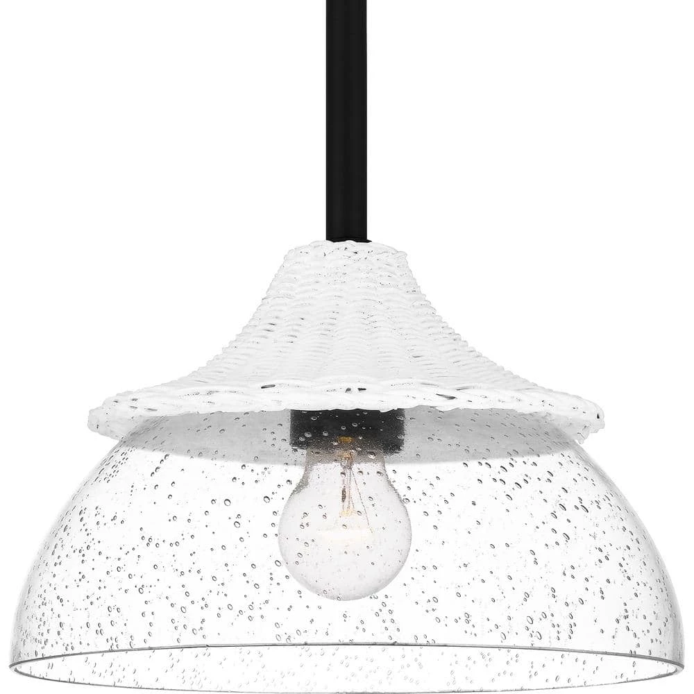 Basketweave details add country-inspired to the Otten light, available as a mini pendant, island light or semi-flush mount. Part of the Quoizel Naturals line, Otten boasts an adaptable black and white color palette to slip into almost any space or design style. A clear glass shade allows for a decorative, Edison-style bulb for additional character and intrigue.
