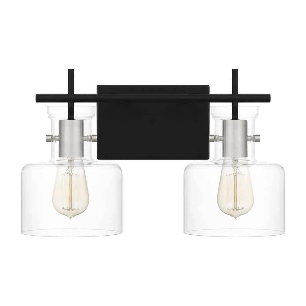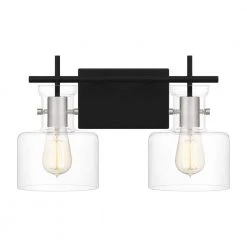 A matte black finish includes a hint of shine, courtesy of brushed aluminum accents, in the Pensbury bath light. With clear glass shades to maximize radiance, the light comes in either three or four bulbs. The black-and-silver colorway adds a refined touch to modern bath spaces.