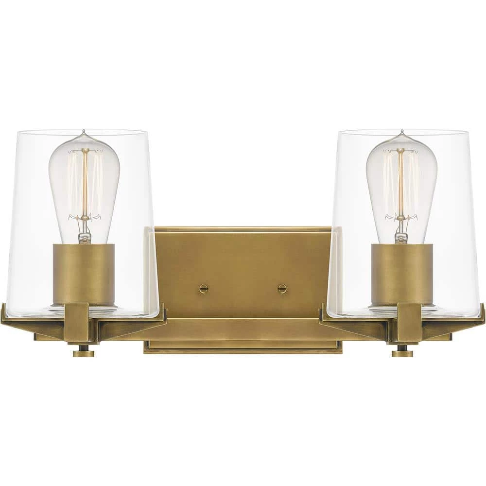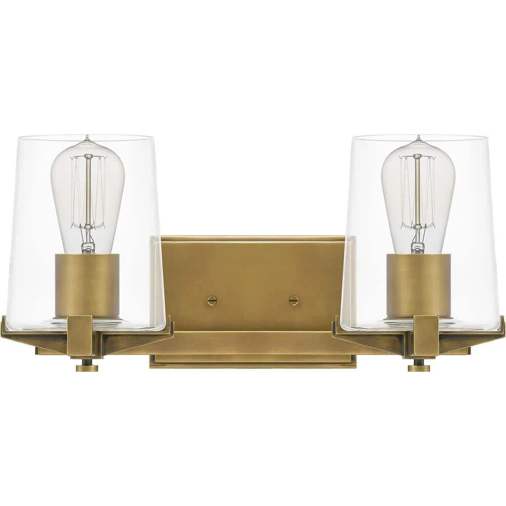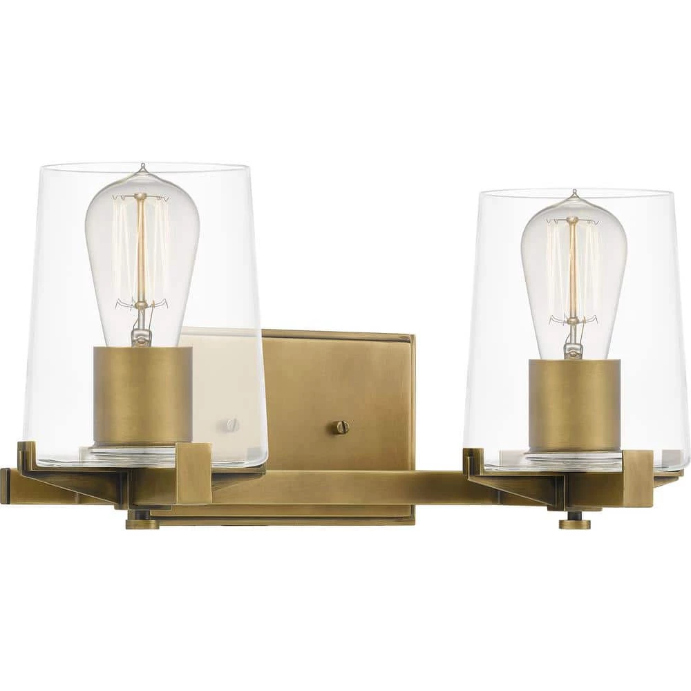 Add transitional flair to your home with Perry bath lights. Clean lines and clear glass shades create a simplistic silhouette, making Perry perfect for any industrial or modern farmhouse setting. Choose from two or three lights in either Weathered Brass or Antique Nickel or to upgrade your bathroom lighting today.