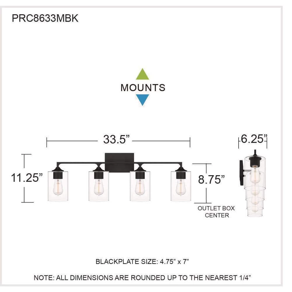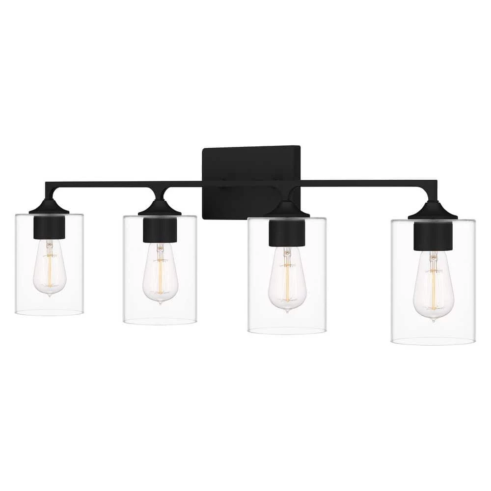 The Prescott bath light offers eye-catching, transitional styling over any bathroom vanity. A simple silhouette and clear cylindrical glass shades make Prescott the perfect choice for understated style. Choose from two, three, or four lights – all available in either brushed nickel or matte black.