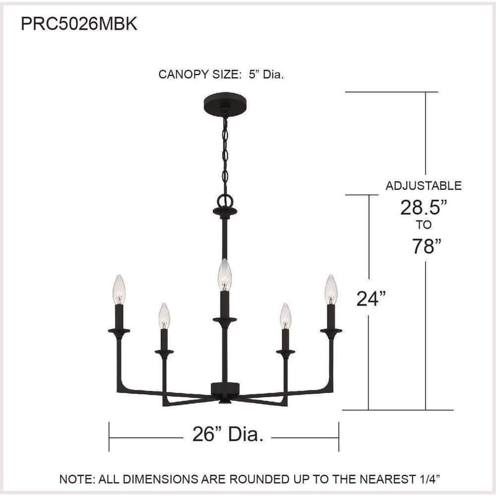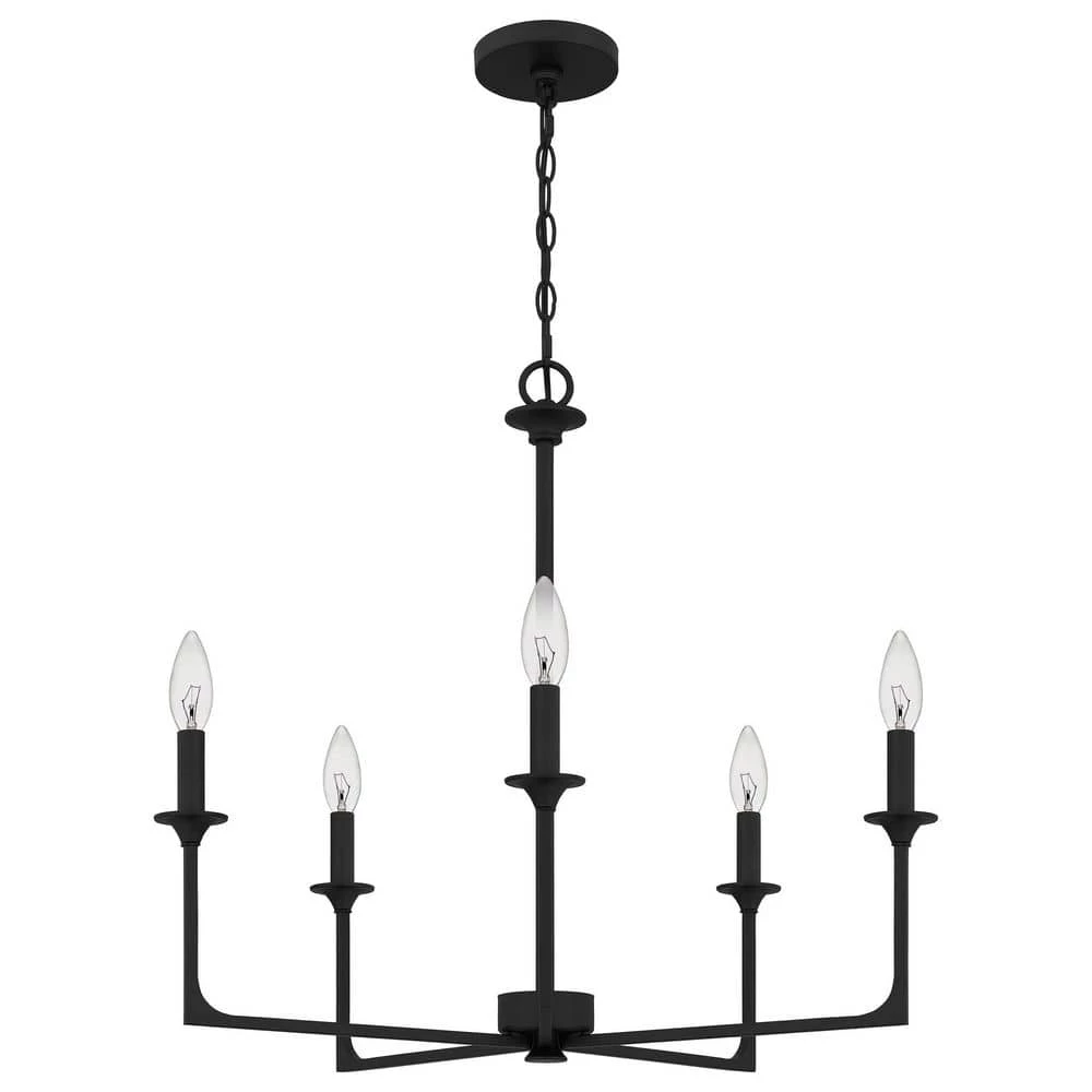 Prescott 5-Light Matte Black Candlestick Chandelier by Quoizel