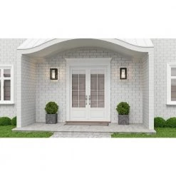 Infinger 7 in. 1-Light Earth Black Outdoor Wall Lantern Sconce with Clear Seeded Glass by Quoizel