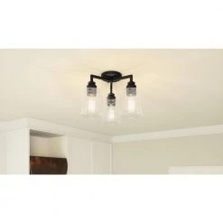 Landry 20.5 in. 3-Light Satin Brass Semi-Flush Mount by Quoizel