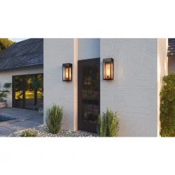Maren 7.5 in. 1-Light Matte Black Outdoor Wall Lantern Sconce with Clear Glass by Quoizel