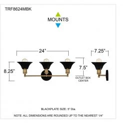Trafalgar 24 in. 3-Light Matte Black Vanity Light by Quoizel