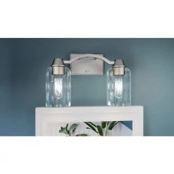 Acacia 21.5 in. 3 Light Brushed Nickel Vanity Light with Clear Water Glass by Quoizel
