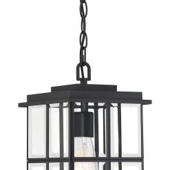Moira 8.25 in. 1-Light Earth Black Outdoor Pendant-Light with Clear Water Glass by Quoizel