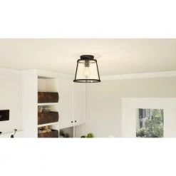 Labrant 10.5 in. 1-Light Matte Black Semi-Flush Mount by Quoizel