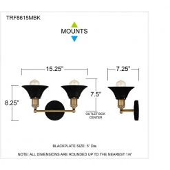 Trafalgar 15.25 in. 2-Light Matte Black Vanity Light by Quoizel