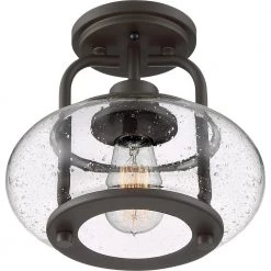 Trilogy 10 in. 1-Light Old Bronze Semi-Flush Mount by Quoizel