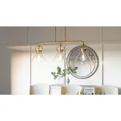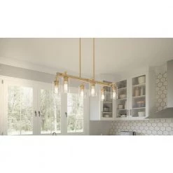 Kelleher 6-Light Nouveau Painted Weathered Brass Linear Chandelier with Clear Glass Shade by Quoizel