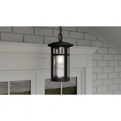 Uma 8 in. 1-Light Matte Black Outdoor Pendant-Light with Clear Water Glass by Quoizel