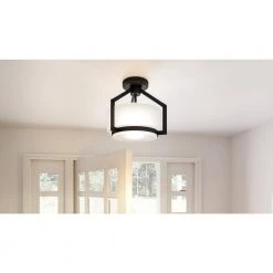 Collinham 14.25 in. 2-Light Matte Black Semi-Flush Mount by Quoizel
