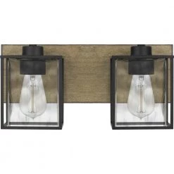 Holsten 15 in. 2-Light Matte Black Vanity Light with Clear Hammered Glass by Quoizel