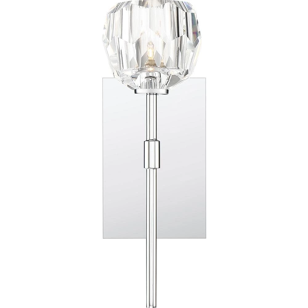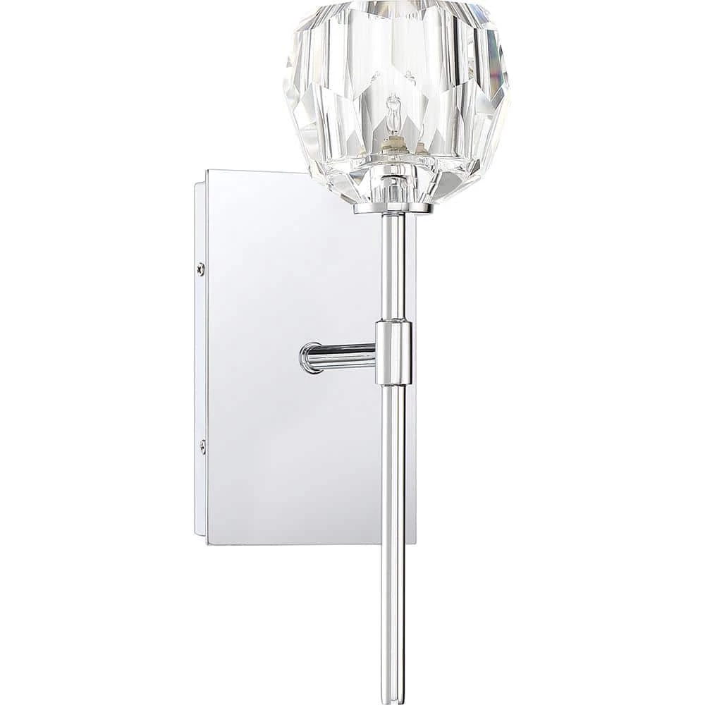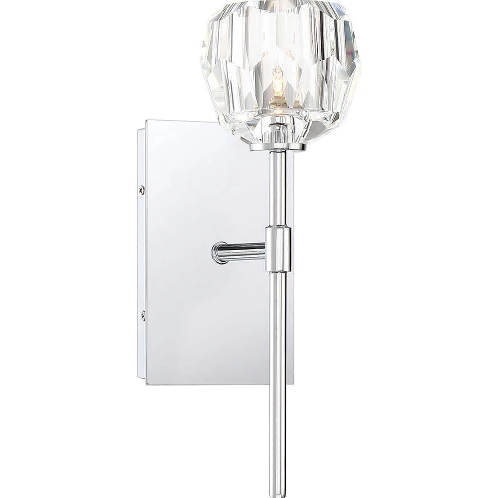 The Regalia makes a chic style statement with prismatic crystal shades that amplify the light and can be mounted up or down. An understated crossbar and rectangular backplate are finished in a sophisticated polished chrome to finish the look. This fixture is ETL listed for use in damp locations.