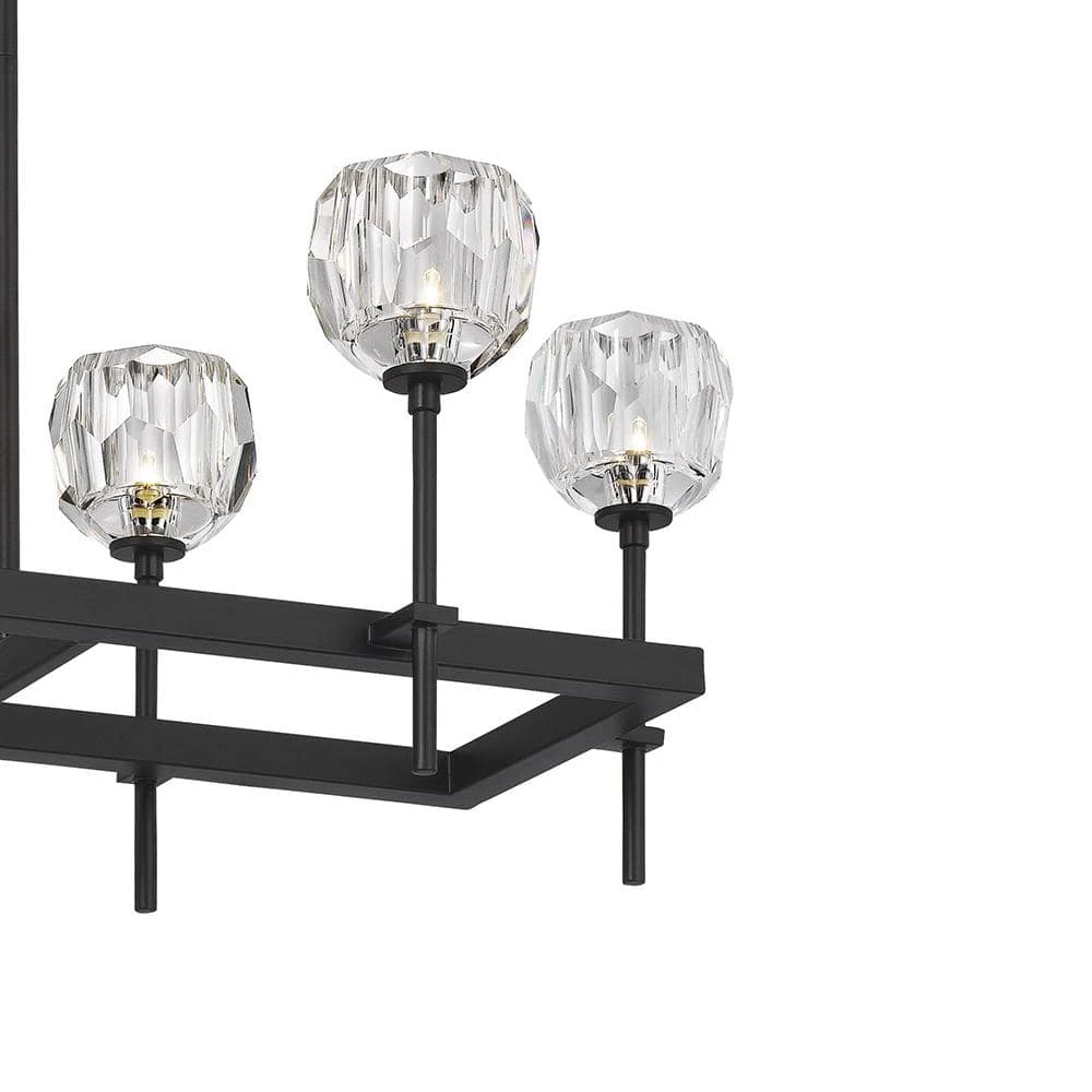 The Regalia makes a chic style statement with faceted crystal shades that amplify the light. The Understated silhouettes are finished in an edgy, yet sophisticated matte black to finish the look. Fixture is dimmable when paired with a compatible dimmer.