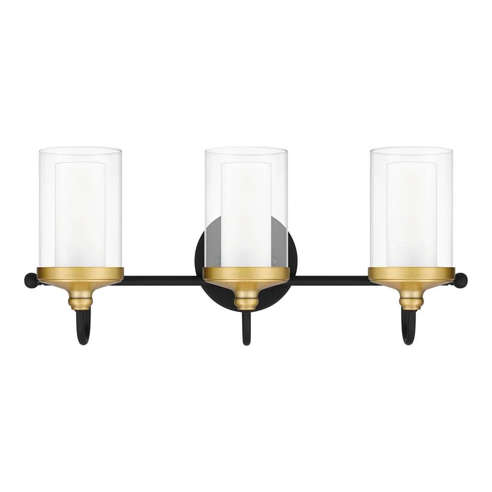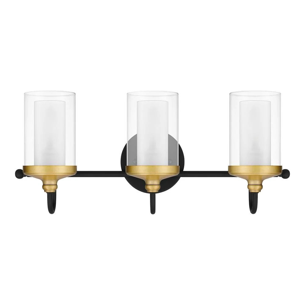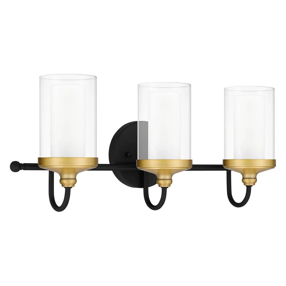 Available in either two, three, or four bulbs, the Rowland bath light can be positioned up or down to cast a unique illumination. This light, inspired by a modern farmhouse aesthetic, combines a matte black finish with brass-toned details. Clear glass shades beautifully maximize light.
