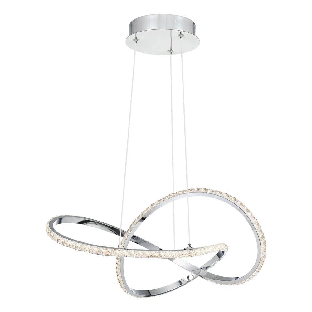 A stylized infinity symbol with faceted crystal accents, the Rumi pendant makes a powerful design statement that marries glamorous and modern aesthetics. Use it in a powder room, entryway, or anywhere else you want to set the tone for high style. An integrated LED light source is included, giving off an ideal glow.