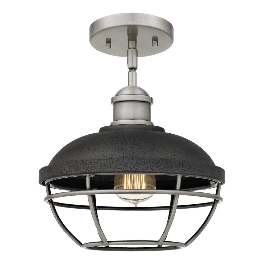 An antique polished nickel finish adds an inspired, weathered look to the sandpiper light. with a subtly coastal aesthetic, this piece is both functional and charming. Available as a mini pendant or semi-flush mount.
