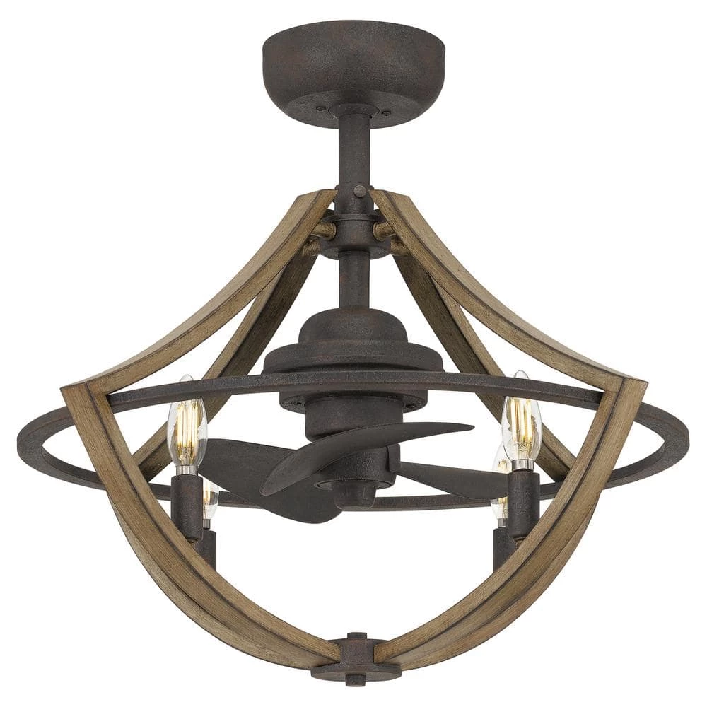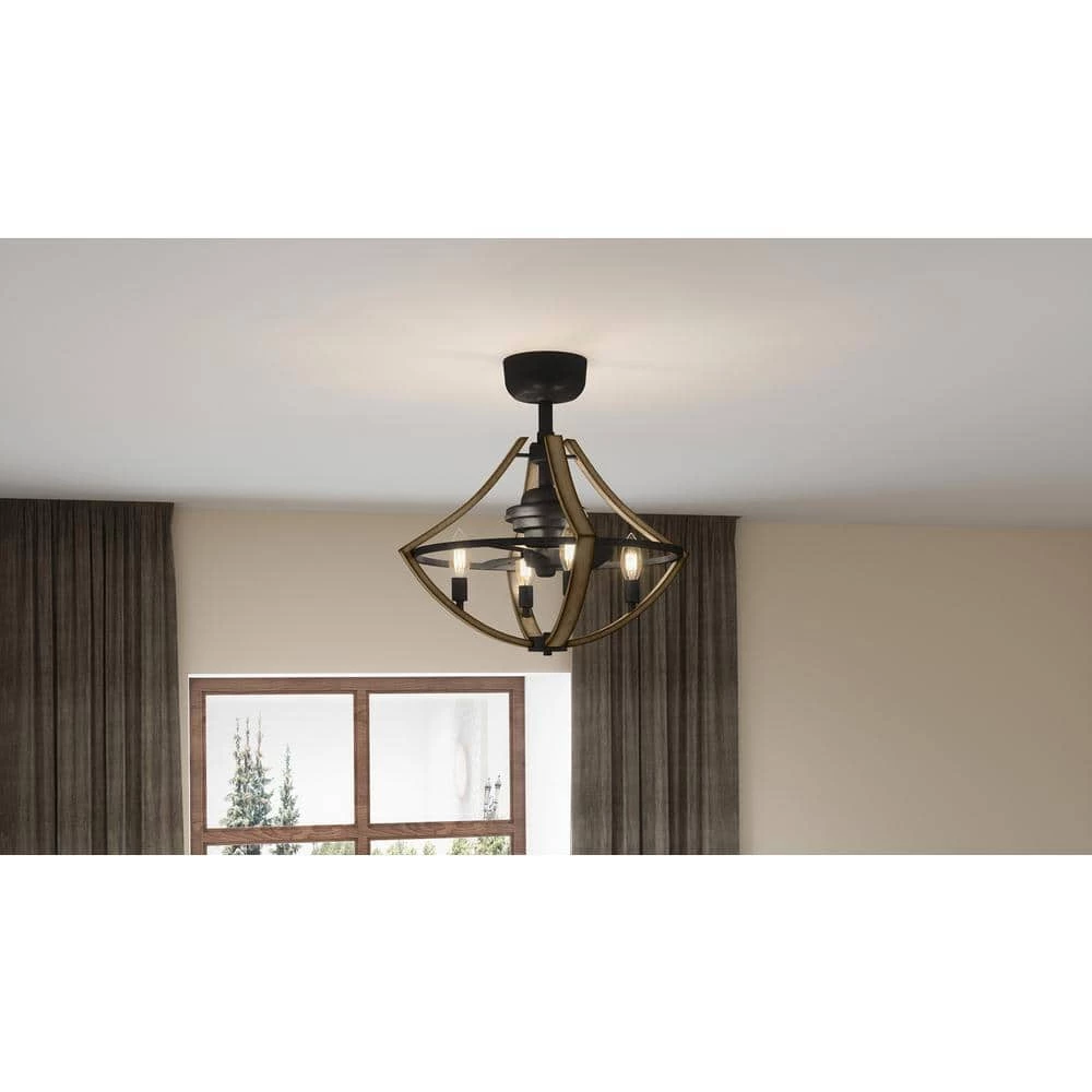 Though crafted from steel, the Shire fandelier features an enchanting design that mimics the look and patina of wood amid a rustic black finish. with its diamond-like shape and interior fan, Shire is a union of form and function, providing refreshing air while casting a warm, beguiling glow. A reversible, 3-speed motor lets you customize your cool.