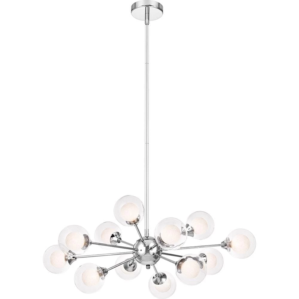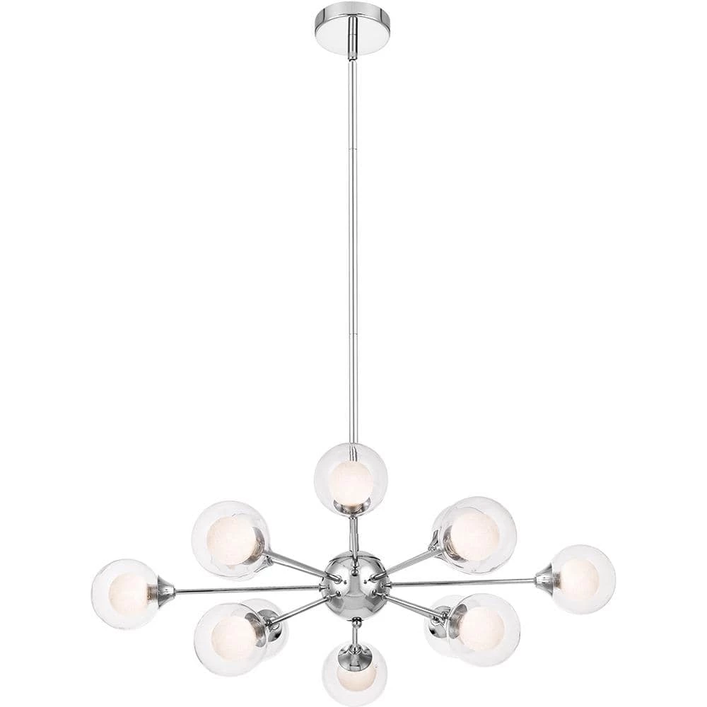 Find yourself mesmerized by the vintage beauty of the Spellbound, a stunning member of Platinum by Quoizel. Inspired by the sputnik designs of decades past, this collection is truly retro reimagined. Spheres of shimmering ice glass are encased in outer shades of clear glass, resulting in a glittering display of light. The polished chrome arms and sockets adds a contemporary edge to finish the look.