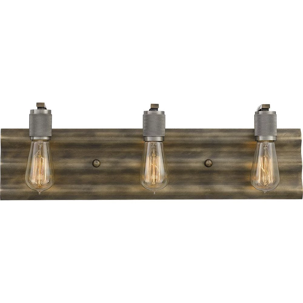 Add a bit of rustic flair to your bathroom with the Spinnaker collection. The corrugated metal backplate is finished in Statuary Bronze and complemented with industrial style sockets. The exposed bulbs emit a strong glow in all directions. All Spinnaker fixtures can be mounted as up lights or downlights.
