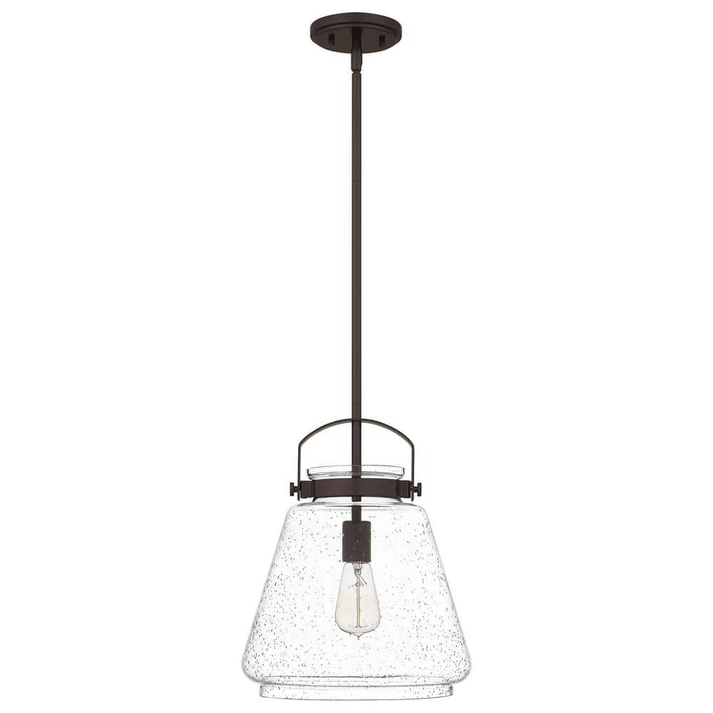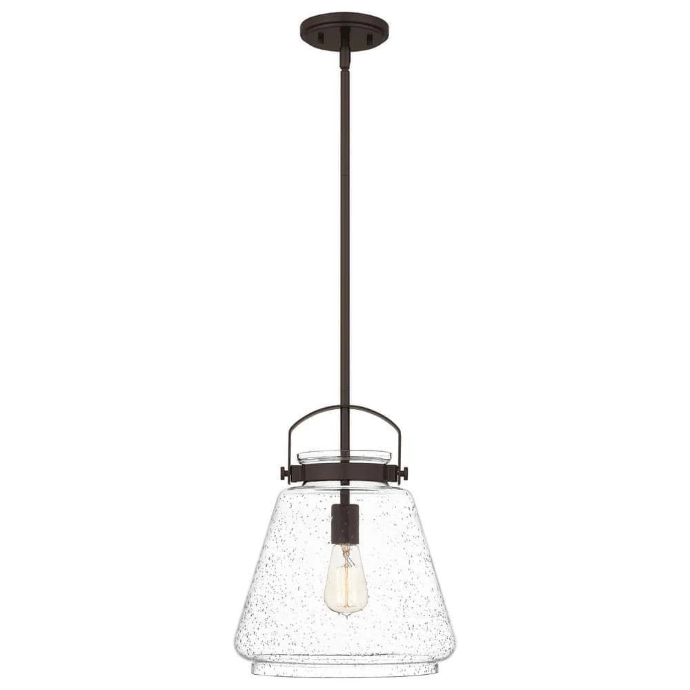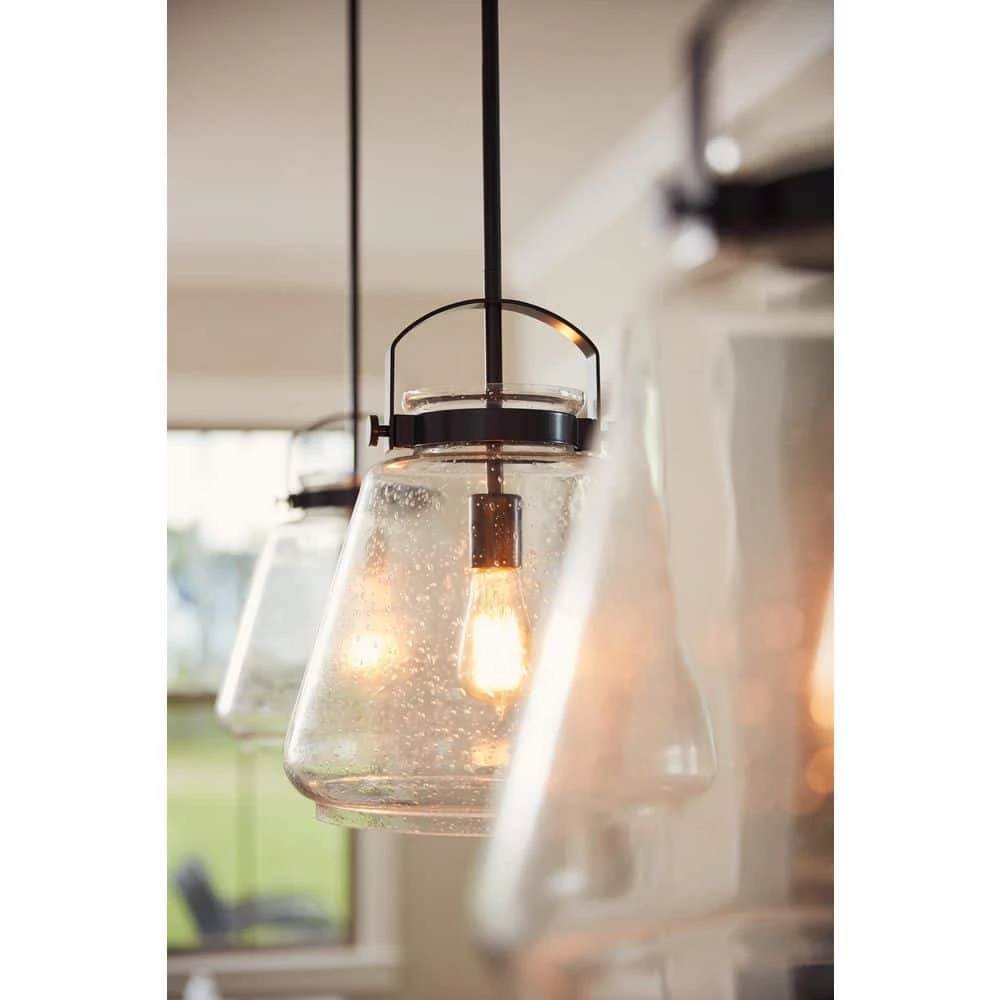 Pairing a seeded glass shade with either an antique nickel or weathered brass finish, the Stella mini pendant adds cheerful charm to small spaces. This piece also works well in multiples. Use a set of 3 to 5 to illuminate a bathroom or kitchen.