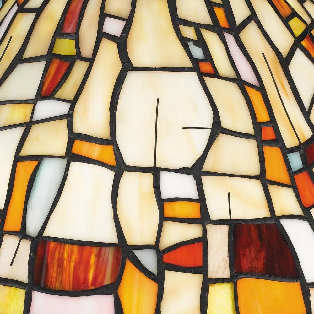 - Shade features varying shapes and tones of multicolor art glass