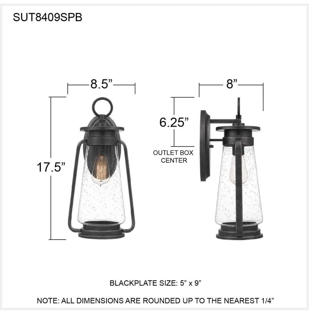 Add instant curb appeal to your home with the Sutton outdoor collection. The rounded Speckled Black frame and clear seeded glass panels create a transitional feel that complements both a modern farmhouse or industrial style. Choose from multiple options including a hanging lantern, wall lanterns, and post lantern to round out your home’s exterior.